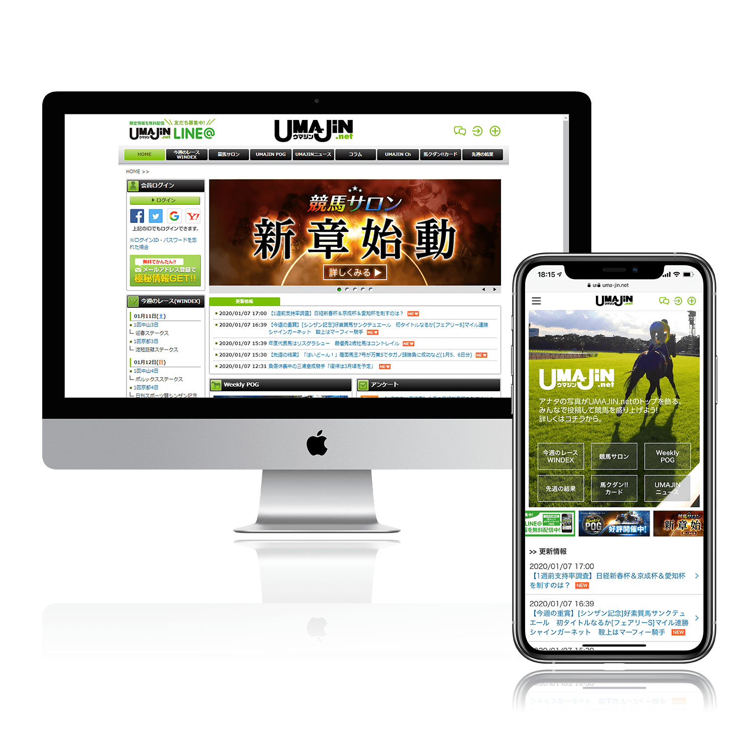 会員数80万人を超える業界トップクラスの競馬ポータルサイト「UMAJIN.net」。2009年のサービス開始時から、サイト/コンテンツの制作、保守、更新業務を行っております。